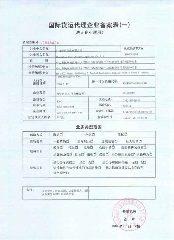 • Certified enterprise certificate of AEO Certificate (East Changer logistics)